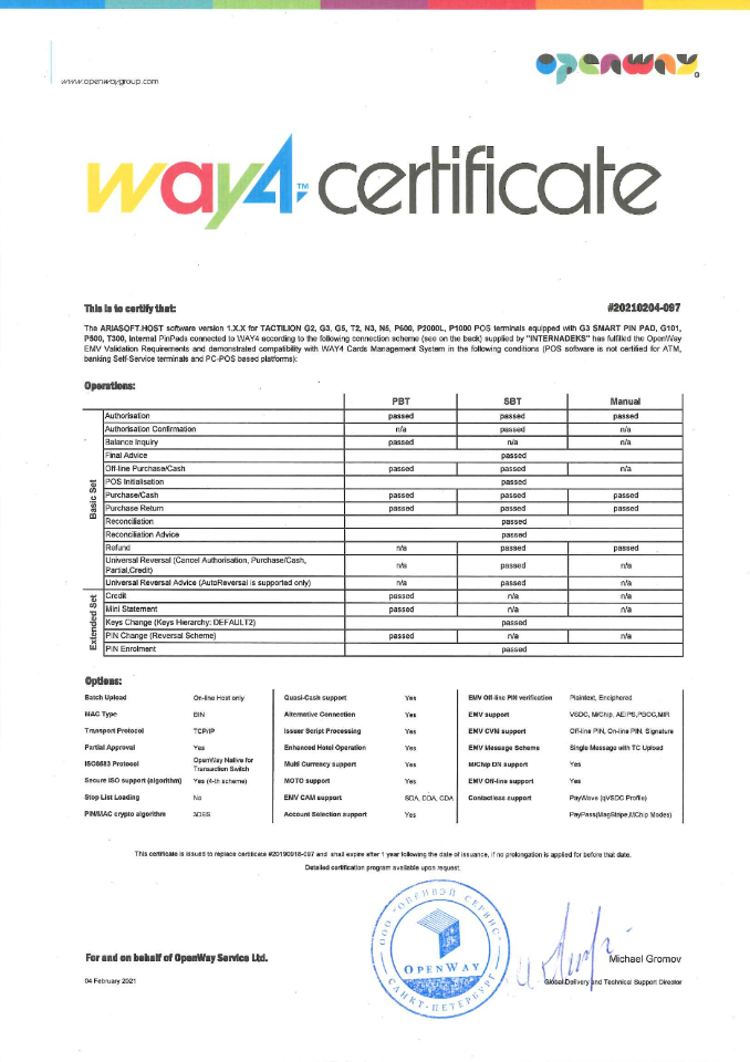 От компании OpenWay на электрический персонализационный модуль WAY4 EMV