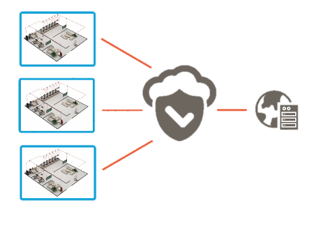 Часть офисов управляется на прямую с центрального сервера, а часть с использованием локальных кэш серверов. Применяется в случае не устойчивого канала связи до отдельных офисов.